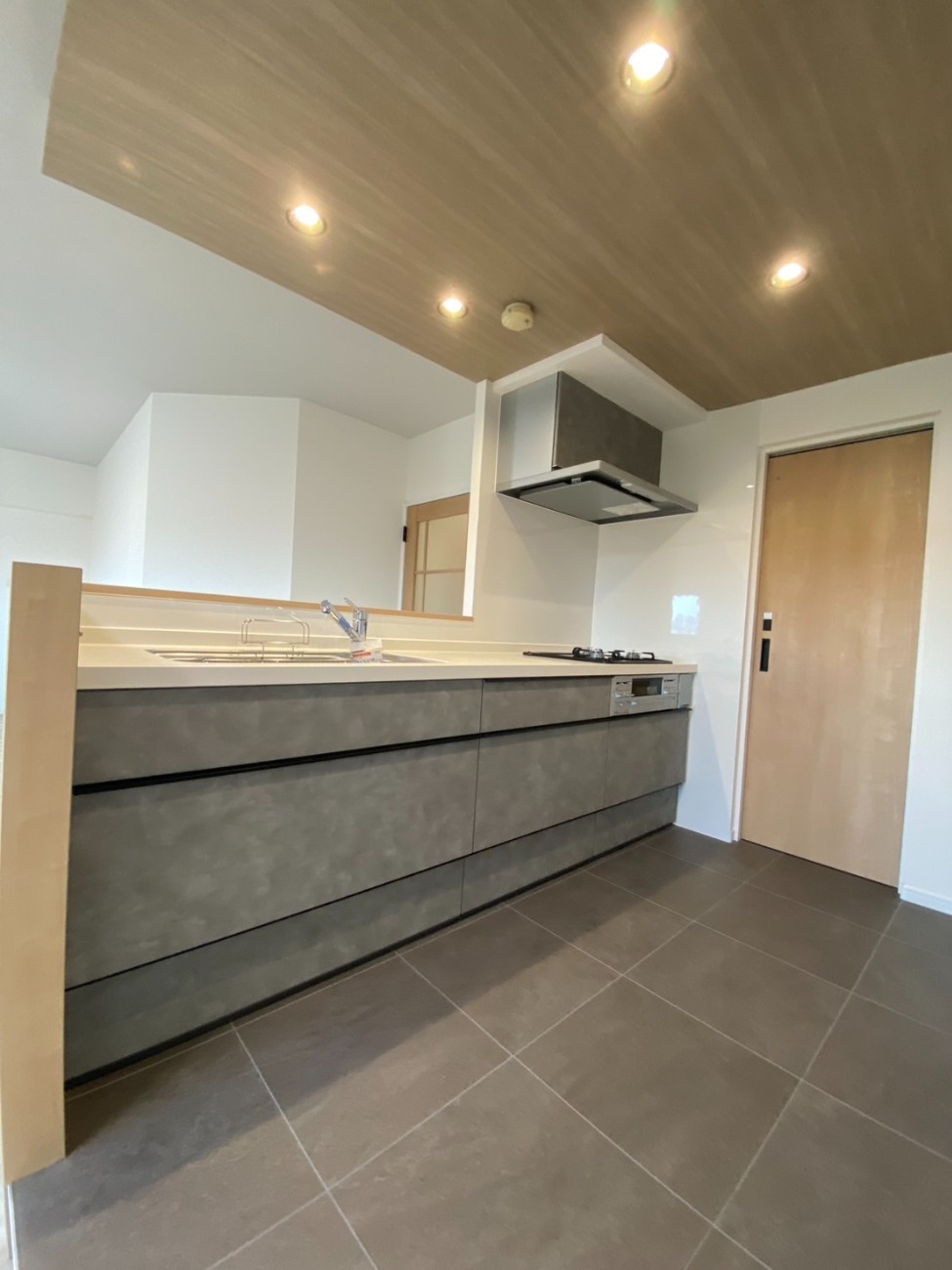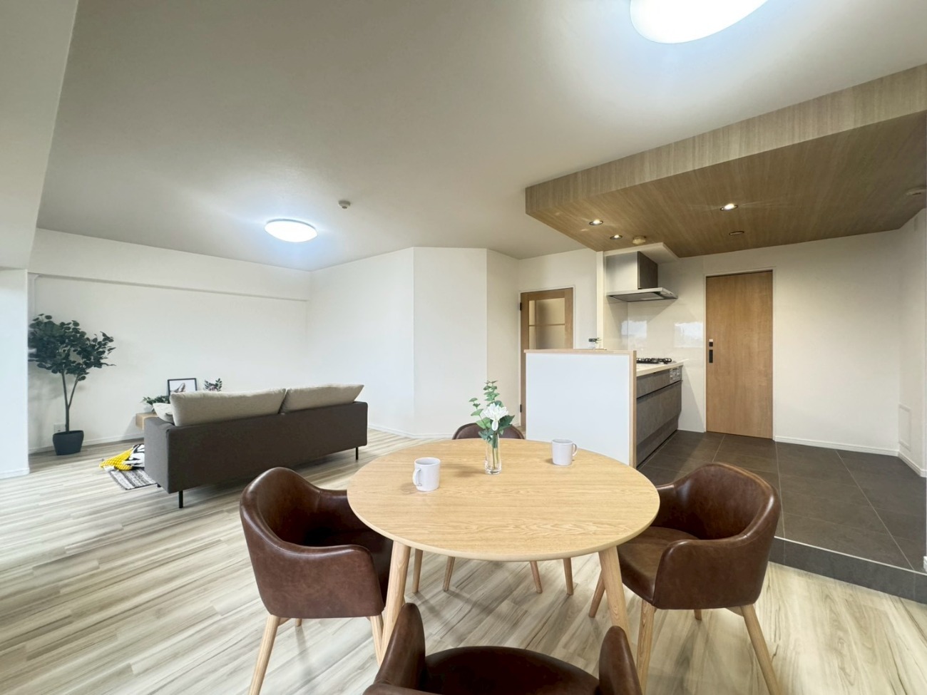 LDKは間仕切りを見直しキッチンとダイニングを一体化させ、解放感と温かみのある空間に♪